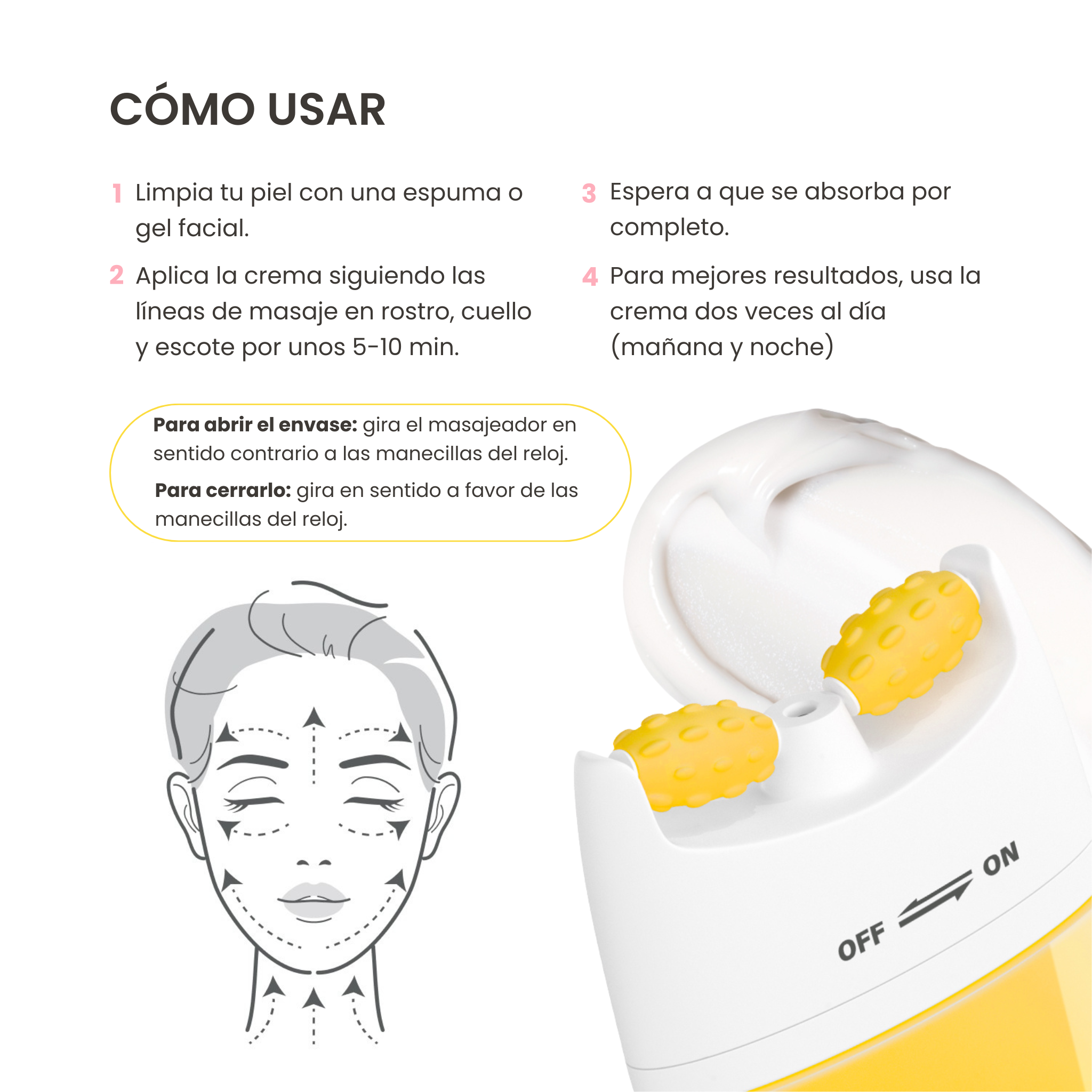 Buscas una crema que hidrate en profundidad, ayude a reafirmar, iluminar y prevenir el envejecimiento prematuro, mientras disfrutas un masaje facial profesional en casa.